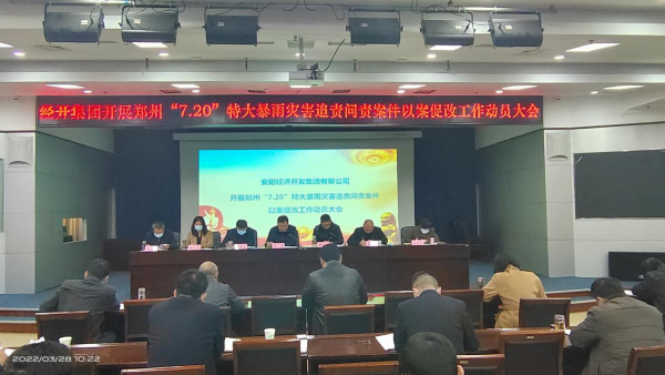 按照市紀(jì)委監(jiān)委深化以案促改做好整改工作的要求,集團(tuán)開展鄭州“7.20”特大暴雨災(zāi)害追責(zé)問責(zé)案件以案促改工作。為扎實(shí)開展此項(xiàng)工作,會議要求:以鄭州“7.20”特大暴雨災(zāi)害追責(zé)問責(zé)案件為鏡鑒,持以“案”為基礎(chǔ)、以“促”為關(guān)鍵、以“改”為目標(biāo),認(rèn)真梳理、深入查找災(zāi)害暴露出的貫徹落實(shí)習(xí)近平總書記關(guān)于防汛救災(zāi)工作重要論述和指示批示精神不到位、落實(shí)防汛救災(zāi)主體責(zé)任不到位、履職盡責(zé)不到位等主要教訓(xùn),堅(jiān)持問題導(dǎo)向,深挖問題根源,以案促改、以案促治,引導(dǎo)廣大黨員干部牢固樹立人民至上、生命至上理念,著力提高應(yīng)急處突工作能力,切實(shí)增強(qiáng)風(fēng)險(xiǎn)意識和底線思維,嚴(yán)格落實(shí)防汛救災(zāi)主體責(zé)任,守土有責(zé)、守土盡責(zé)。