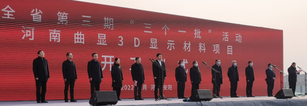 2022年1月4日上午,集團(tuán)副總經(jīng)理溫惠玲陪同市委副書記、市紀(jì)委書記黃明海,市政府副市長(zhǎng)王新亭,市政府副市長(zhǎng)、安陽(yáng)縣委書記王紅兵以及河南投資集團(tuán)有限公司、市城鄉(xiāng)一體化示范區(qū)、東旭集團(tuán)、新石器公司等相關(guān)領(lǐng)導(dǎo)前往示范區(qū)參加我市“三個(gè)一批”項(xiàng)目開工儀式。在開工儀式活動(dòng)現(xiàn)場(chǎng),黃明海書記宣布全市第三期“三個(gè)一批”活動(dòng)暨河南曲顯3D顯示材料項(xiàng)目開工。