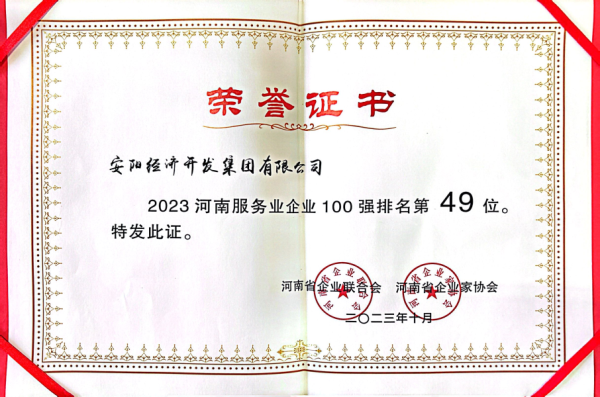 近日,集團在河南企業(yè)100強高峰會上入選“2023河南服務業(yè)企業(yè)100強”,位列榜單第49位,這是集團連續(xù)第2年獲此榮譽。