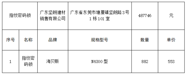 一、指紋密碼鎖中標(biāo)情況