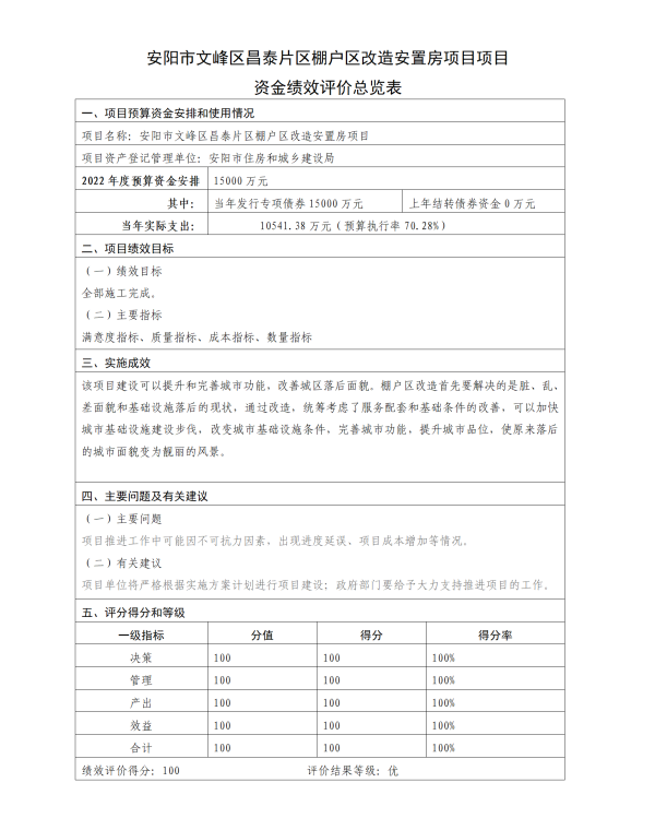 安陽市文峰區(qū)昌泰片區(qū)棚戶區(qū)改造安置房項目資金績效評價報告